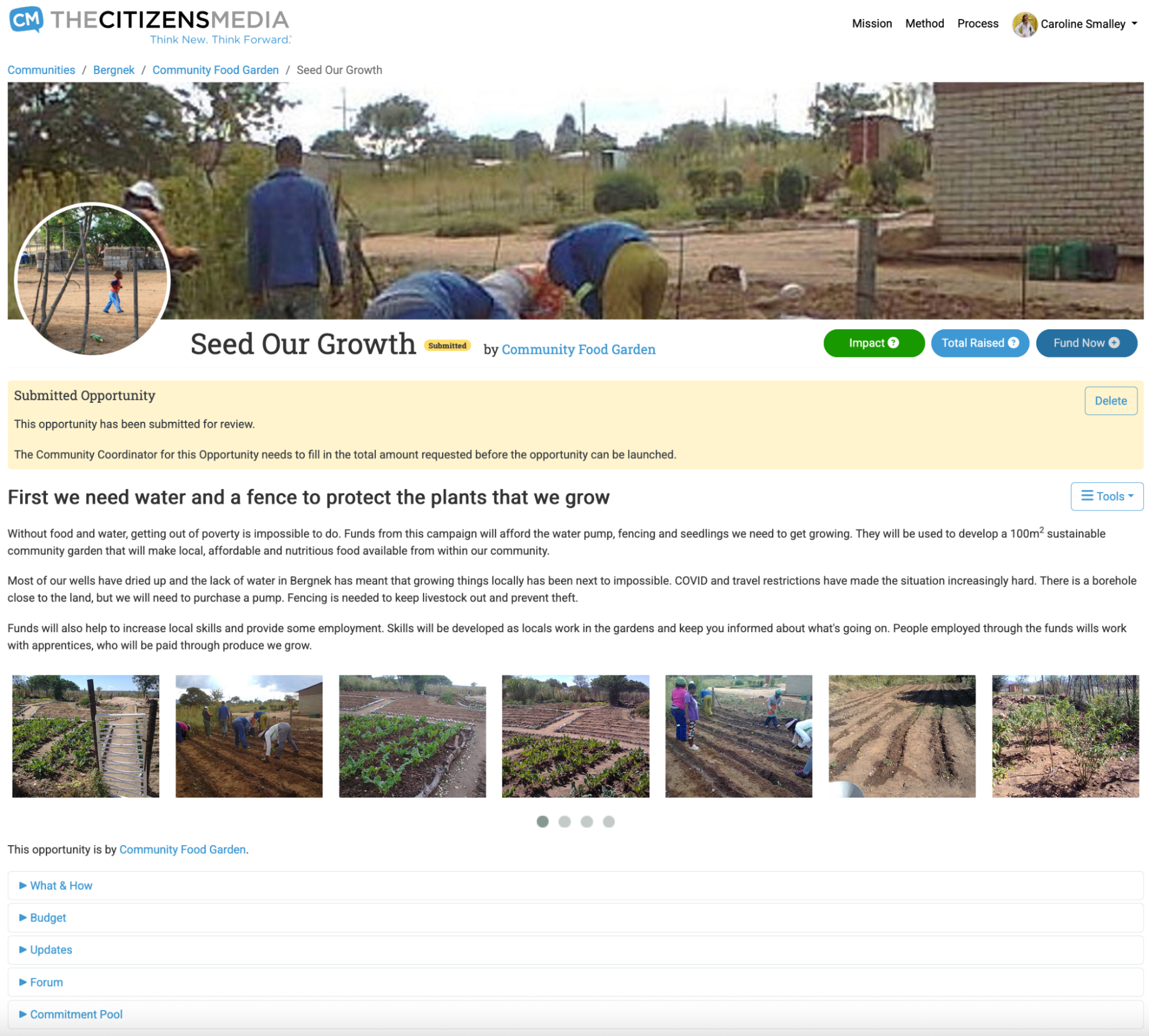 - Don’t ask for too much – you will only receive funds when your Funding Opportunity has been fully funded. Note: If a Funding Opportunity fails to attract new funds for a period of six months before reaching its goal, it will be closed and the funds pledged to date redistributed to other Funding Opportunities within your community.